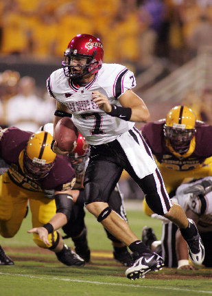 Former Aztec quarterback Kevin O’Connell runs with the ball vs. Arizona State in the 2007 season (Stan Lui)