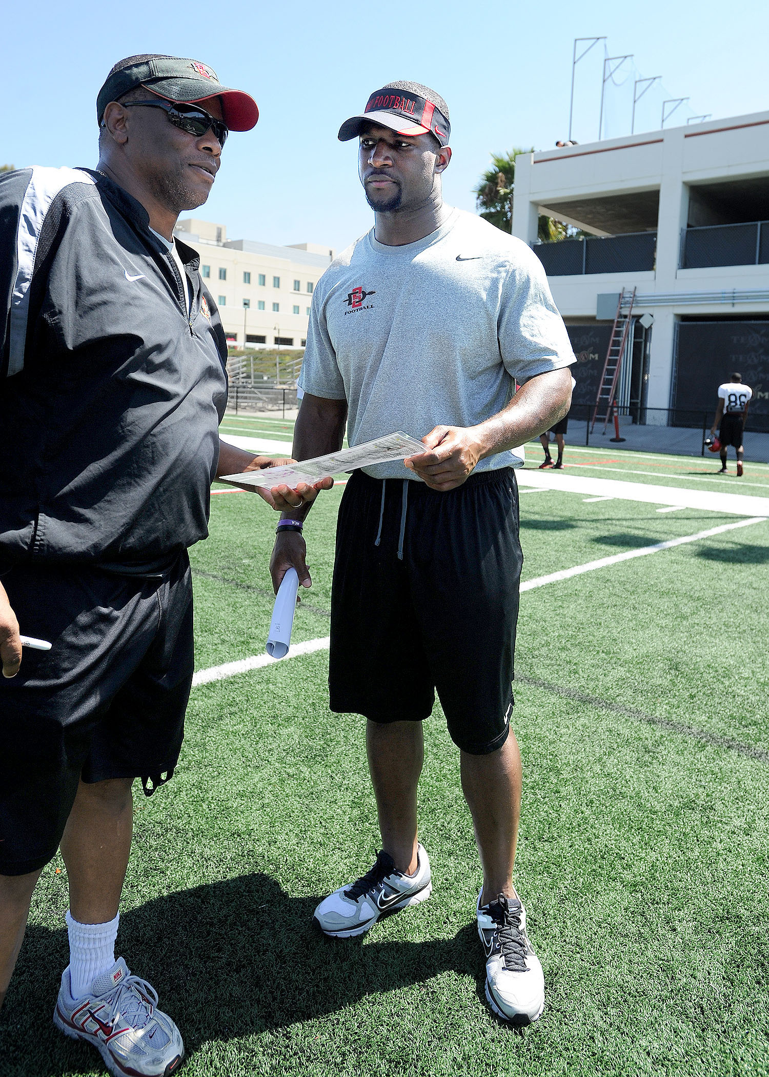 Lynell Hamilton and Doug Deakin are two past Aztec warriors who now serve as graduate assistants for the SDSU coaching staff.